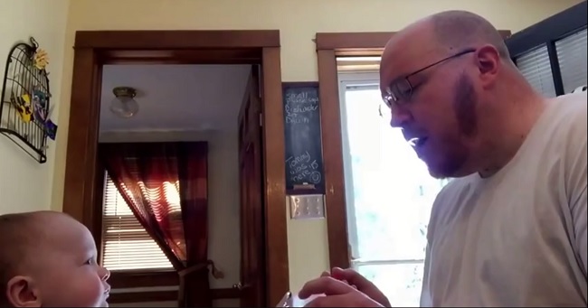 Watch as this father shows off some impressive singing skills while feeding lunch to his adorable toddler.