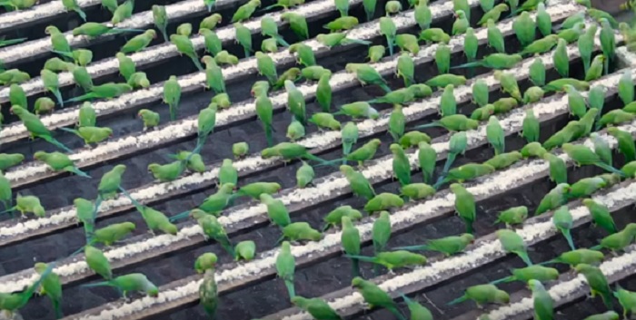 In india, a 62-year-old man named Sekar feeds roughly 4,000 parakeets per day from his home.