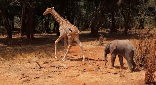 A BABY giraffe and an infant elephant have become best friends after being rescued by a wildlife charity.