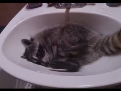 Source: Baby raccoon loves to lounge in bathroom sink by coxyjen on Rumble