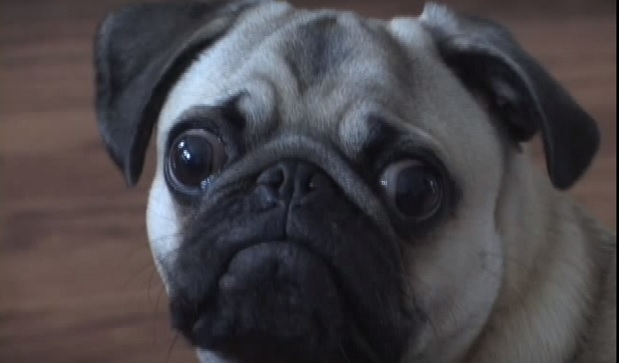 Look at this funny little pug that is really dramatic upon watching the camera.