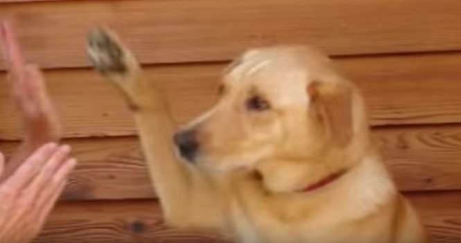All we know is that this dog playing patty cake is super cute.