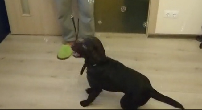 Such a playful and determined pup!