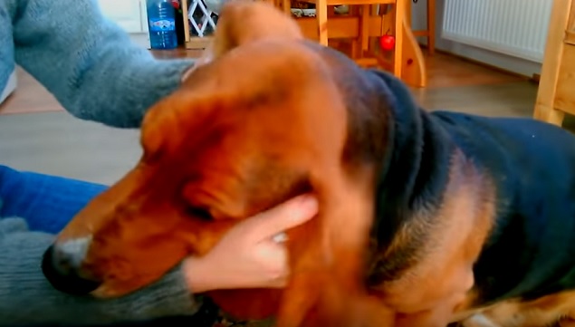 This Basset Hound in this video clip, growls in much excitement after been properly taking care of by undergoing personal hygiene due to its owner.
