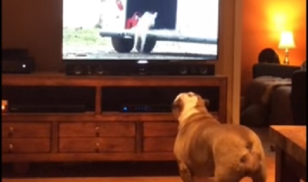 The dog loves the spot in the series that features a little puppy that gets lost and the horses come to his rescue.