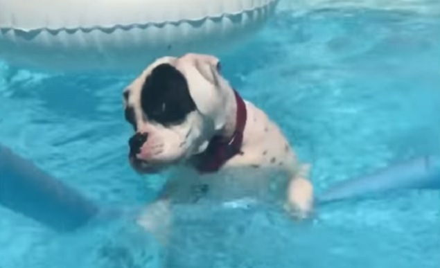 This video clip shows how inspiring young boxer wants to swim just like the rest of the kids. He does not want to be left out of the fun.