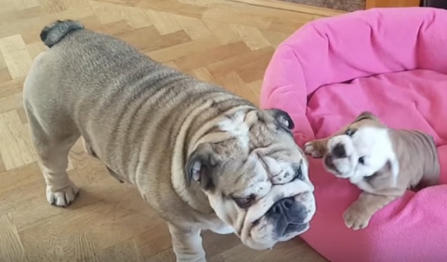 All moms know that kids have a lot of energy and this Bulldog mom is finding that out when she plays with her energetic puppy.