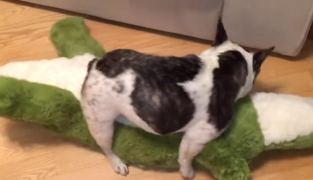 I bet when her owners gave her that big toy alligator they didn’t know she would love the toy this much.