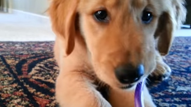 Brushing the teeth keeps a person’s mouth clean and fresh and prevents other health problems, and this little Golden Retriever puppy named Daisy seems to know that.