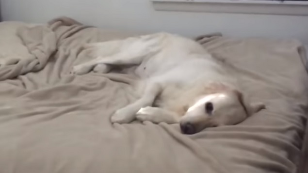 Some owners don’t want their dogs playing or sleeping on the human beds in the house, but this sneaky Golden Retriever is taking advantage of her owner not being home.